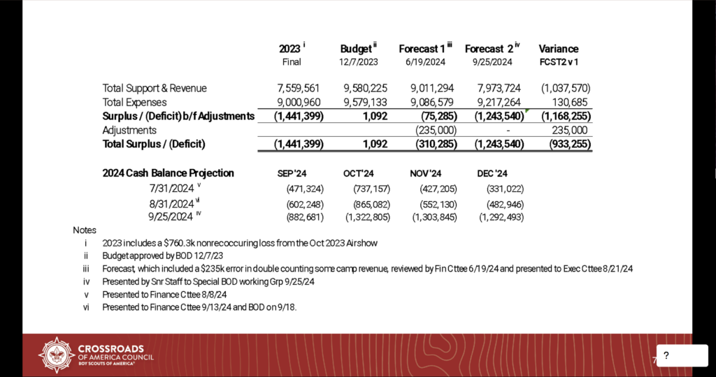 UPDATE (2024-10-14): The Scout Executive behind this scheme was dismissed by his council, allegedly in a “resign or you’ll be fired” ultimatum by the council’s board of directors. Financial shenanigans, poor revenue, and a poorly conceived airshow caused this council to bear $1.44 million of losses in 2023 and $1.24 million of losses in 2024: