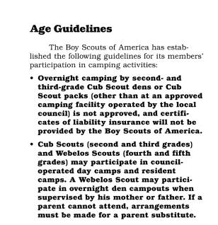 We were all open about it, not because we were flouting anything, but because multi-night campouts were not prohibited. If you told my council’s Cub Scout leaders that national limited Cub Scouts to one-night campouts, you would have been laughed out of the room.