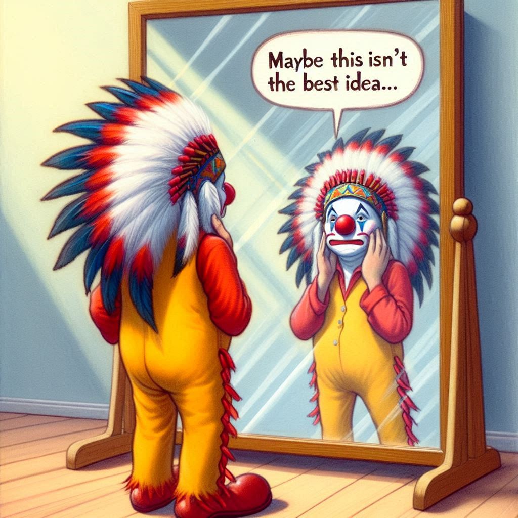 Here I am decades later, and OA’s playing-Indian problem remains unresolved. While some piecemeal action has happened, they are piecemeal, disconnected from any strategy, such as the 2019 prohibition on redface cosplay during Arrow of Light or crossover ceremonies for Cub Scouts. As I write this in September 2024, I still wonder what OA’s plan is, noting that a two-year, “very detailed and methodical evaluation” recently culminated in “minor changes” to its core ceremonies, which still contain a laundry list of racist, pretendian material.